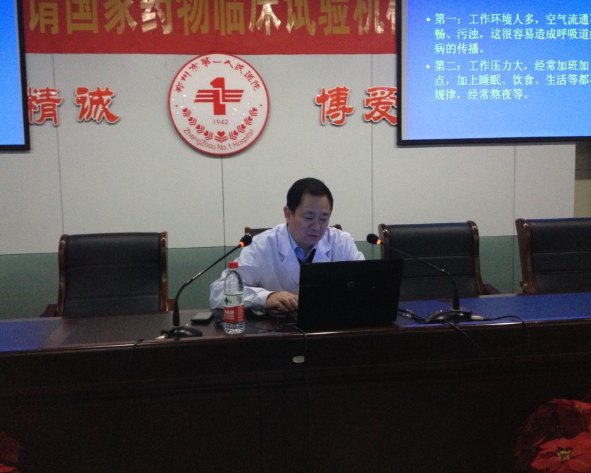 为宣传普及春季传染病的防控知识,提高医护人员的自我防护能力,2013年04月10日下午,我院在医院地下会议室举办了《肺结核的预防和治疗》与《一氧化氮呼出气测定的临床应用》专题知识讲座,邀请呼吸内科常双喜主任就春季传染病防控知识,特别是H7N9型禽流感的预防措施等进行了讲解。