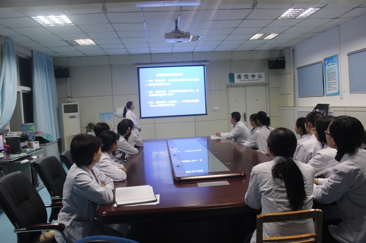 11月12日下午,超声科医师郭静在我院会诊中心进行了进修学习返院汇报交流会,彩超室全体医护人员参加。郭静医师于2012年在北京安贞医院成人超声心动室进修学习半年,系统学习了食道超声及术中超声,已能独立诊断复杂疑难心脏疾病及食道超声操作及诊断,对疑难少见病例亦具有了较好的诊断及逻辑分析能力,培养了良好的心血管超声诊断思维。她以丰富的图片和视频资料展示了进修学习的成果与体会,与现场各位医师进行了广泛交流。回院后计划开展成人食道超声及疑难心血管病的超声诊断技术及方法等工作。
