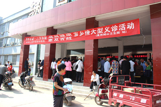 “护士,麻烦您帮我测测血糖。”“大夫,我五点半都来了,麻烦你给我看看我这肩膀,这些日子老是疼,是不是肩周炎犯了?”大夫,你帮我听听心脏,近段时间老是心慌”。5月25日,禹州鸠山镇卫生院挤满了男女老少,热闹非凡。原来是受医联体成员单位——禹州市第二人民医院(以下简称禹州二院)邀请,我院副院长余宏伟、外联办主任黄超霞率我院专家团队,协同禹州二院共计30余名医护人员,共同为当地群众举行“成就健康 惠及百姓”家乡情大型义诊活动。