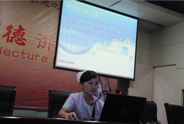 科护士长侯巧红护士长做了“用心做事,以情动人”的道德讲堂培训,就如何认真执行核心制度,做好护患沟通,提升自身素质,增强团队意识,提高执行力,并结合实例进行了生动的讲解。